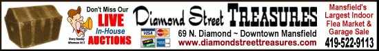 The first person who correctly identifies the subject of the current contest photo will receive a fifty dollar gift certificate from Diamond Street Treasures, located at 69 North Diamond St. in downtown Mansfield (across the street from the pawn shop). The certificate is redeemable for store credit only, and has no cash value. You may apply the face value of the certificate to a larger priced item, or you may use it as a "line of credit" for several purchases of lower priced merchandise.